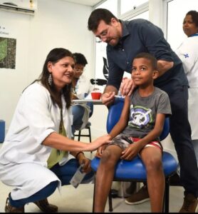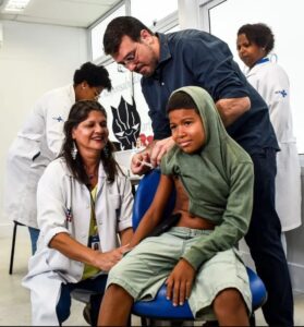 Aconteceu hoje, 09/01/2023, na Clínica da Família Estácio de Sá, no Rio Comprido, na AP 1.0, o início da vacinação com a dose de reforço para crianças de 05 a 11 anos. O evento simbólico contou com a presença do Secretário Municipal de Saúde, Daniel Soranz, que destacou a importância e a necessidade de protegermos com a vacina, os carioquinhas de nossa cidade maravilhosa.