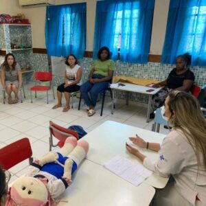 Foi ministrada a Capacitação de Primeiros Socorros, visando orientar os profissionais da creche para a promoção à saúde, prevenção a acidentes e aplicação de procedimentos básicos de primeiros socorros no ambiente escolar.