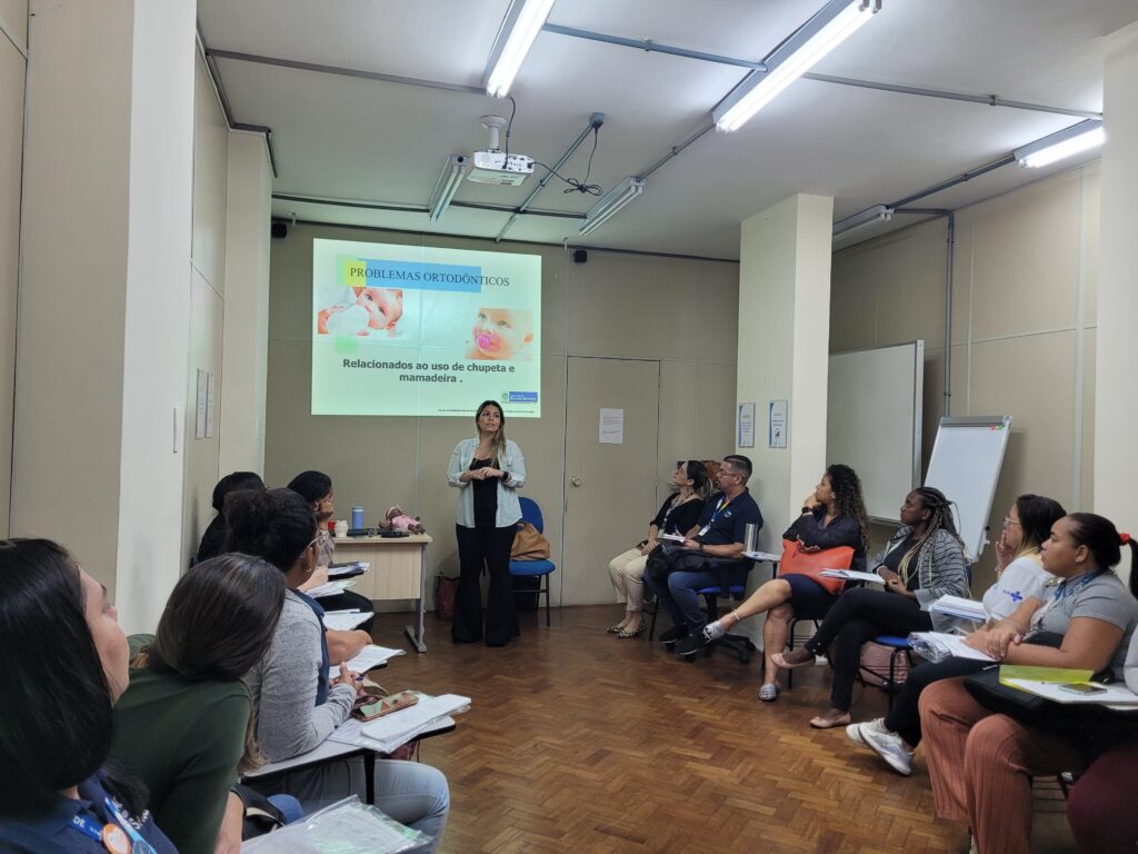 Este foi o segundo dia de aula teórica da turma ministrada por Zilda Santos, Viviane Bartalo – Assessoras Técnicas Saúde da Criança da Divisão de Ações e Programas de Saúde – DAPS CAP 1.0. Com a participação das palestrantes convidadas: Renata Ribeiro – Cirurgia Dentista e Amanda Cruz – Nutricionista, ambas especializadas em amamentação.