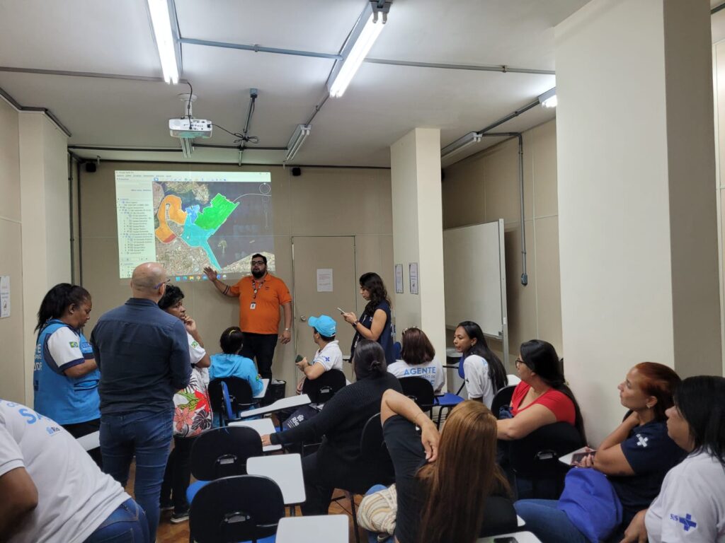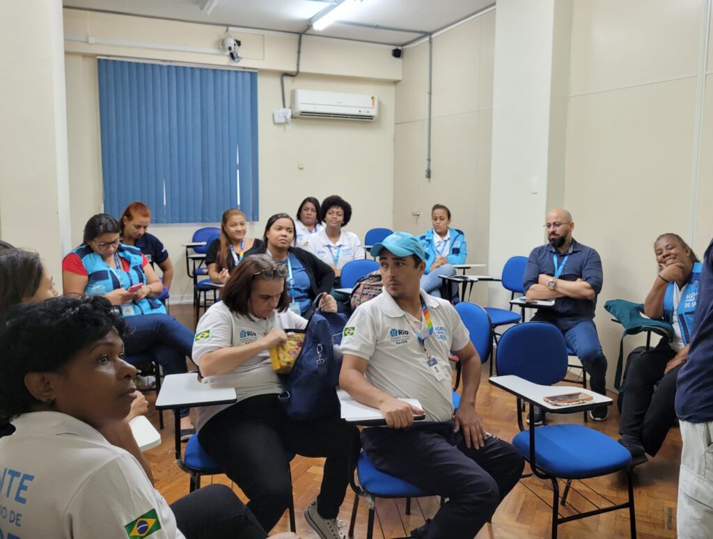 A oficina contou com presença dos Gerentes Willian Fonte (CFSS) e Mariana Areas (CFFABL), e foi mediada pelo Analista de Projetos Vinicius Batista (OTICS-Rio Centro), em colaboração com Paulo César – Responsável pela territorialização da CAP 1.0.