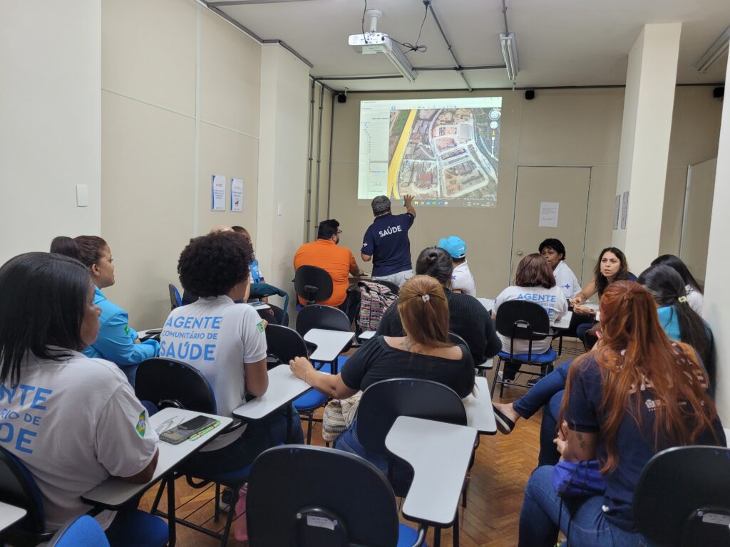 Neste 2º encontro a oficina foi realizada de forma conjunta entre as duas CF’s. Os agentes comunitários, através do Google Earth, auxiliaram na atualização do limite territorial das equipes: Rubi e Jade (CFFABL); Diamante e Esmeralda (CFSS).