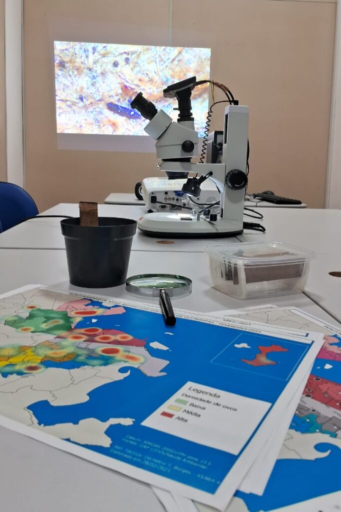 A oficina foi ministrada por Demétrio Tederich e teve como objetivo reforçar as orientações técnicas para os Agentes de Vigilância em Saúde e demonstrar as etapas de coleta de dados em campo, análise em laboratório e geoprocessamento de todo monitoramento de Aedes com uso das armadilhas de oviposição.
