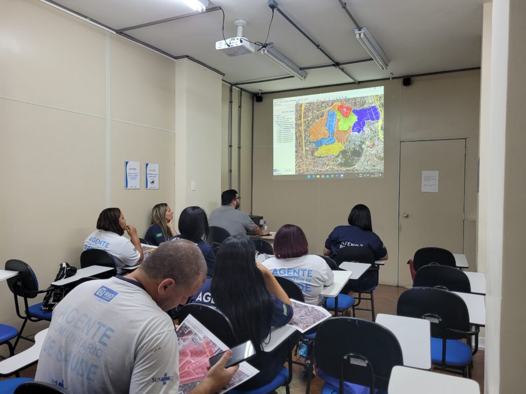 Durante a oficina, que contou com a participação da Gerente Danielle Silveira, foram apresentadas as funcionalidades do Google Earth Pro para que os agentes comunitários aprendessem a utilizar a ferramenta e os recursos necessários para realização do novo desenho das equipes. Assim melhorando a divisão das microáreas de cada equipe e a demarcação do território, alinhando o mapa territorial da unidade.