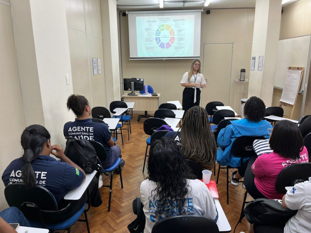 Este foi o encontro da 3ª turma de agentes comunitários, que tiveram palestra sobre a “Linha de Cuidado da Criança e Adolescente” ministrado por Viviane Bartalo – Apoio Técnico (DAPS/CAP 1.0).