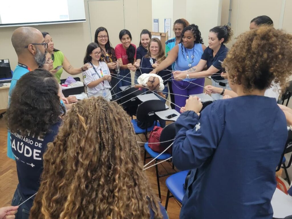 Este foi o segundo dia do curso e os profissionais participaram de atividades de integração em grupo, com relatos da atuação na APS. Também foram realizadas palestras: