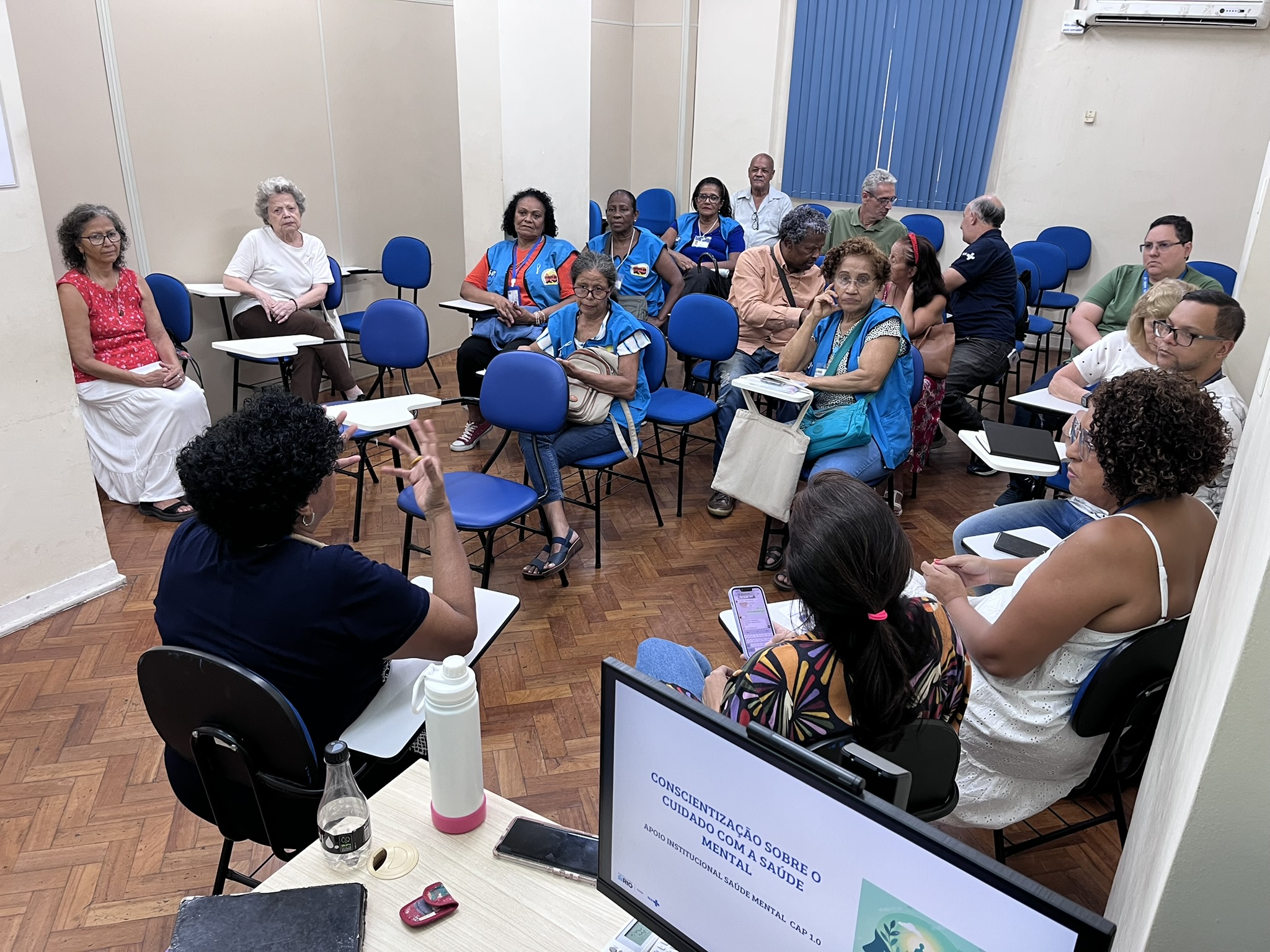 A reunião se iniciou com a apresentação da palestra “Conscientização da Saúde Mental: Sua Mente precisa de Pausa”, ministrada por Fátima Virginia – Apoiadora Institucional de Saúde Mental/CAP 1.0.
