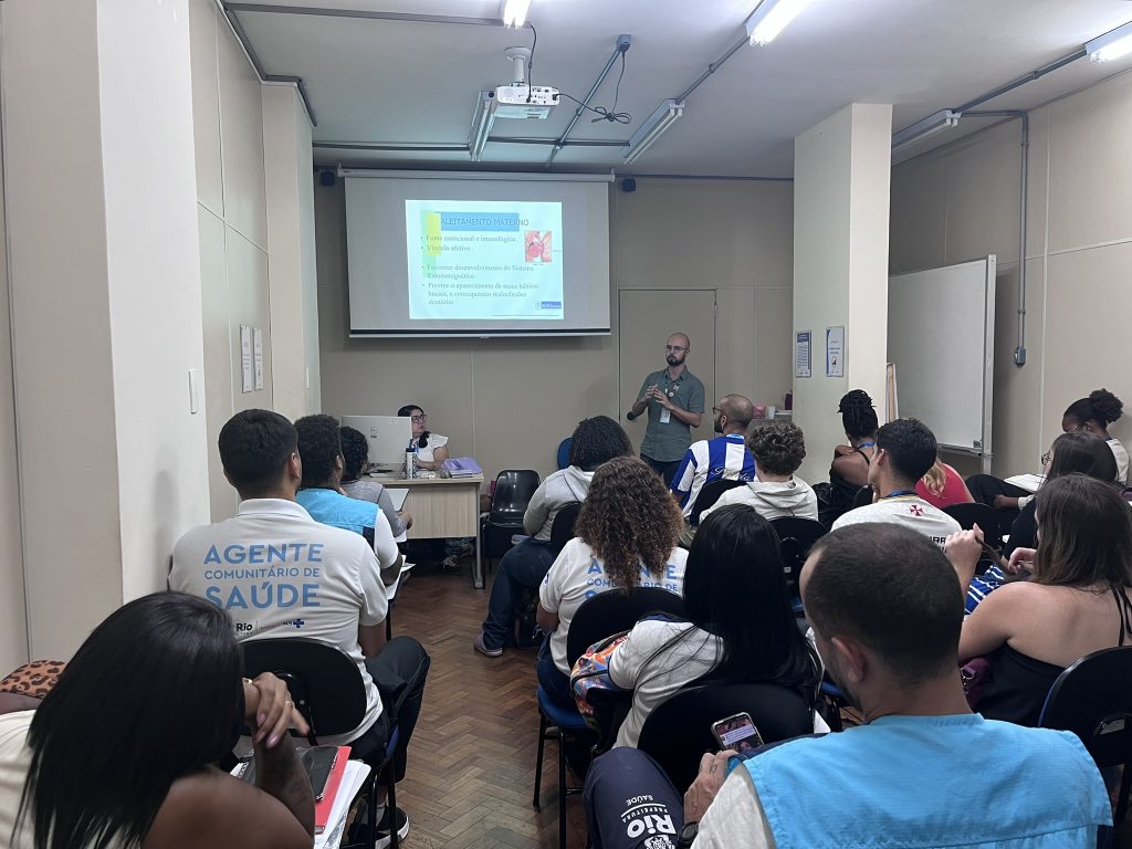 Neste último dia de aula teórica do curso, os profissionais participaram de dinâmicas sobre promoção e captação do aleitamento materno no território (realizada pelas Multiplicadoras IUBAAM Zilda Santos/Coordenadora IUBAAM AP 1.0, Fernanda Lima e Shenia Medeiros/Apoiadoras da Linha de Cuidado de Saúde da Criança DAPS-CAP 1.0) e introdução alimentar sólida aliada a amamentação (realizada pelo ACS Rodrigo Ouro/CMS Salles Netto). Além disso, foram realizadas palestras feitas por profissionais do SUS Carioca, com os temas: