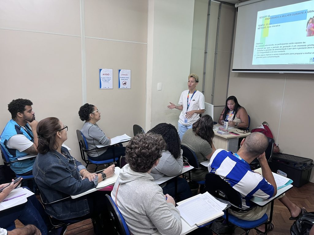 Nesta terça-feira, 14 de abril de 2026, no Auditório da Estação OTICS-Rio Centro, foi realizado o terceiro dia do Curso de Formação de Multiplicadores: Iniciativa Unidade Básica Amiga da Amamentação (IUBAAM), para capacitação dos profissionais de Atenção Primária à Saúde (APS) da CAP 1.0.