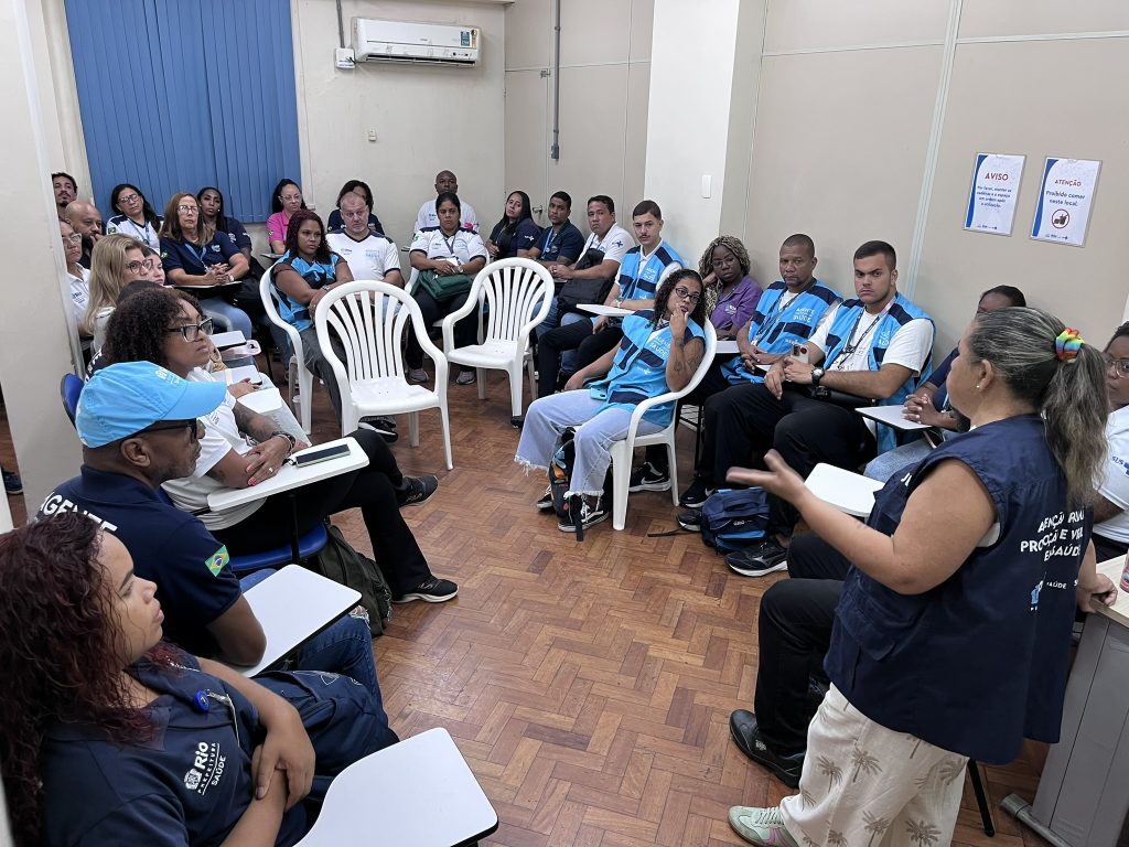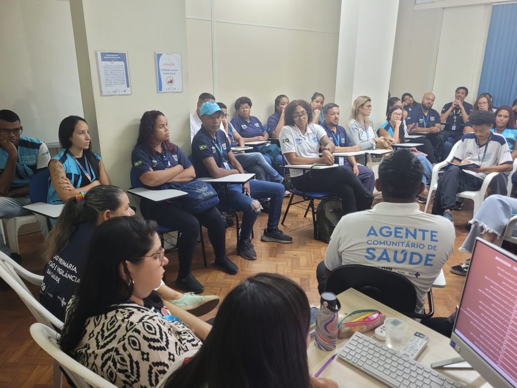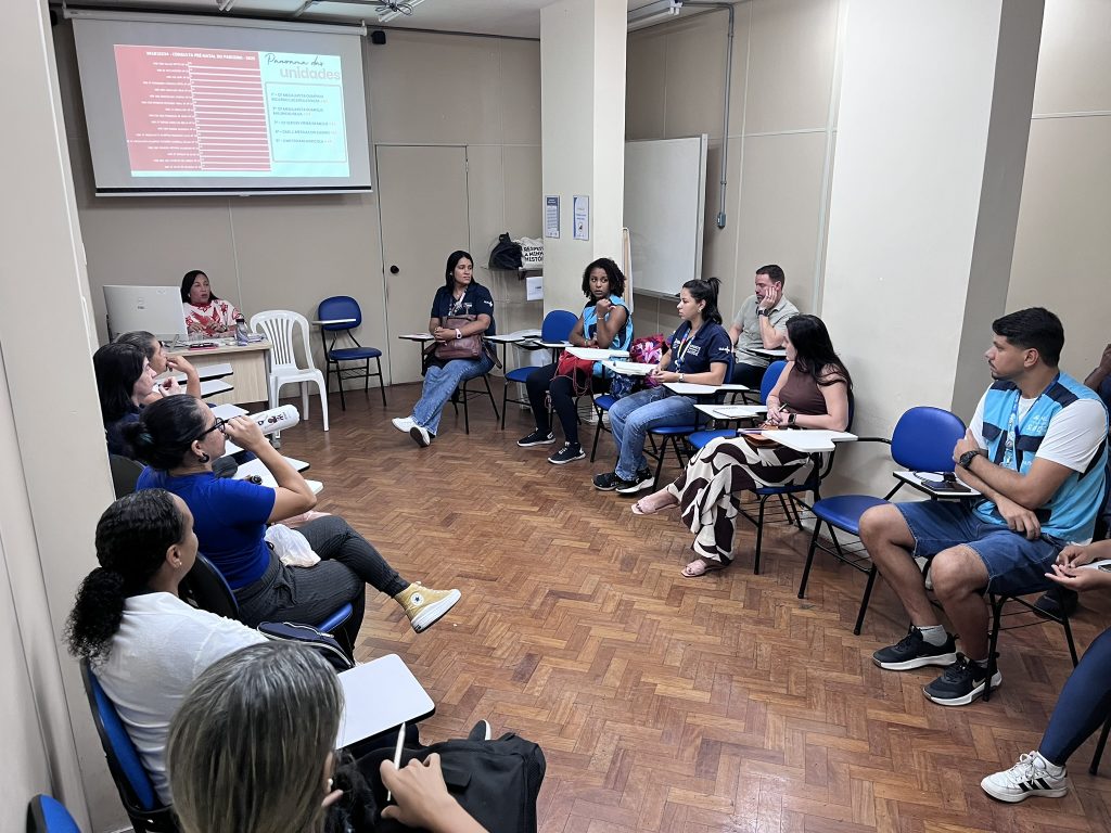 A reunião foi ministrada por Zilda Santos, Fernanda Lima e Shenia Medeiros em conjunto com os Agentes Comunitários de Saúde da AP 1.0, com objetivo de alinhar as atividades do GT de Parternidade que serão apresentadas durante o Festival Masculidades, em maio no Museu de Arte do Rio e no Museu do Amanhã.