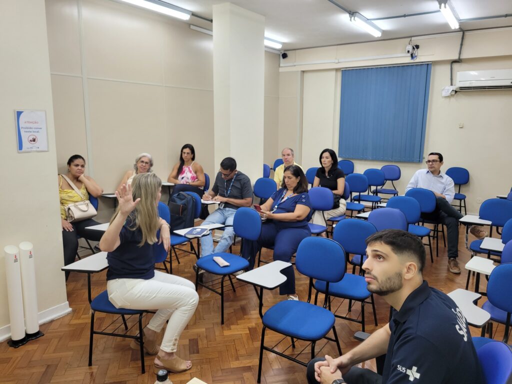 Nesta quinta-feira, 02/05/2024, no auditório da Estação OTICS-Rio Centro, foi realizada a Reunião para Treinamento de Curativos, da Coordenação de Linha de Cuidado das Doenças Crônicas Não Transmissíveis, da Divisão de Ações e Programas de Saúde (DAPS) da Coordenadoria de Saúde da Área de Planejamento 1.0.