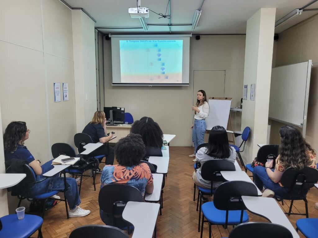 A aula de Saúde Mental foi ministrada pela Drª Celina Ragoni, que junto aos residentes realizaram a Avaliação dos Estágios. Como forma de analisar as atividades previstas no plano de trabalho, a adequação ao ambiente de trabalho e o alcance das expectativas de desenvolvimento profissional.