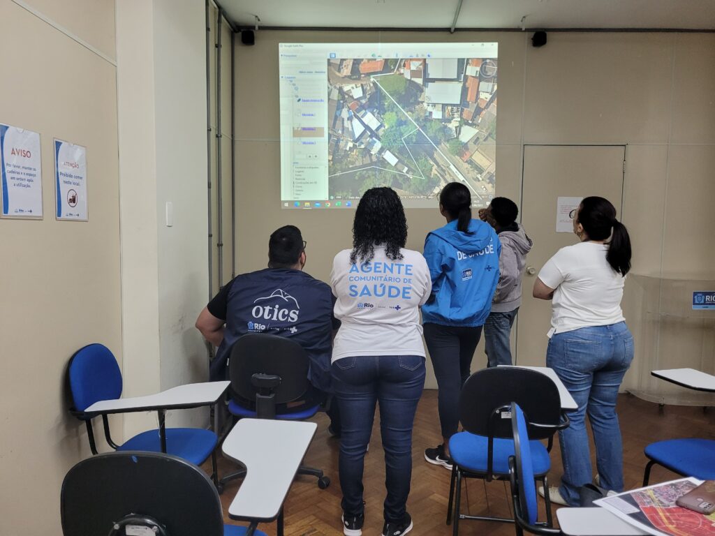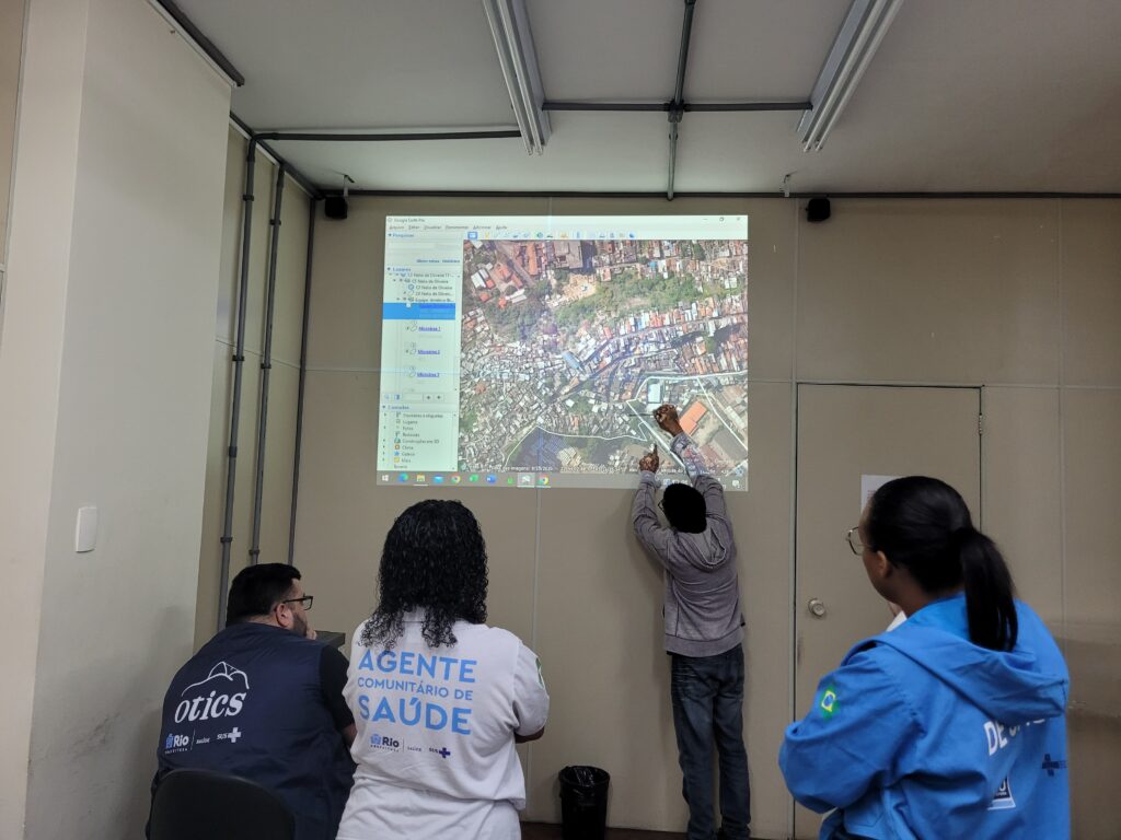 Durante a oficina foram apresentadas as funcionalidades do Google Earth Pro, para que os agentes aprendam a utilizar a ferramenta e os recursos necessários para realização do novo desenho das microáreas e possam melhorar a demarcação de seus territórios utilizando o Google Earth como apoio.