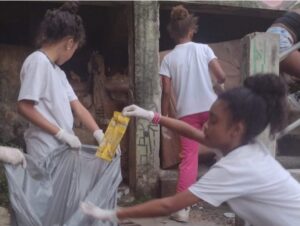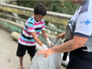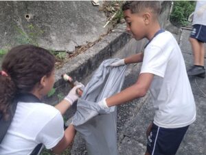 Após a conscientização, os alunos percorreram a comunidade recolhendo lixo descartado de forma irregular, tudo feito sob a supervisão dos Agentes Comunitários de Saúde, que disponibilizaram luvas e sacos plásticos.