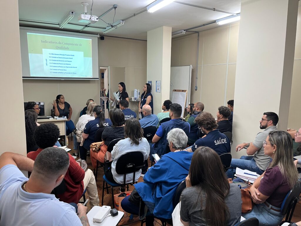 A reunião para discussão dos indicadores do componente de qualidade do novo modelo de cofinanciamento federal da Atenção Primária à Saúde (APS), teve a participação dos gestores das Clínicas da Família e dos Centros Municipais de Saúde da AP 1.0.