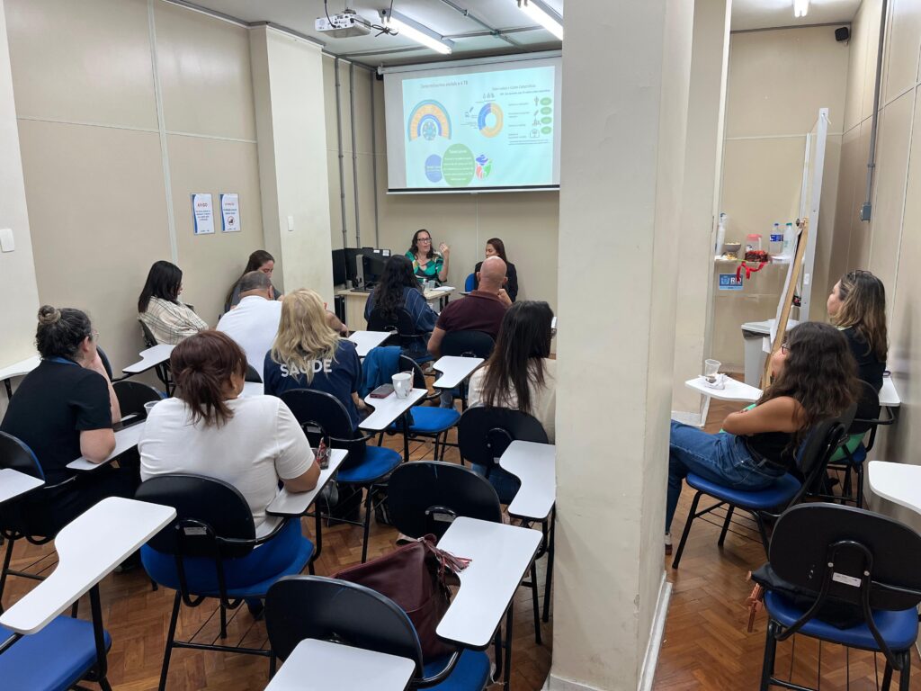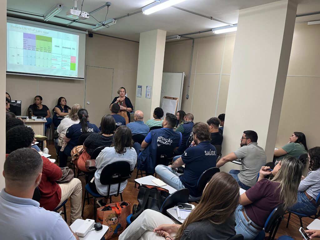 A Enfermeira Sanitarista, Jaqueline Evaristo, foi a responsável por ministrar o GT para os profissionais da Divisão de Vigilância em Saúde (DVS) e da Divisão de Ações e Programas de Saúde (DAPS) da CAP 1.0.