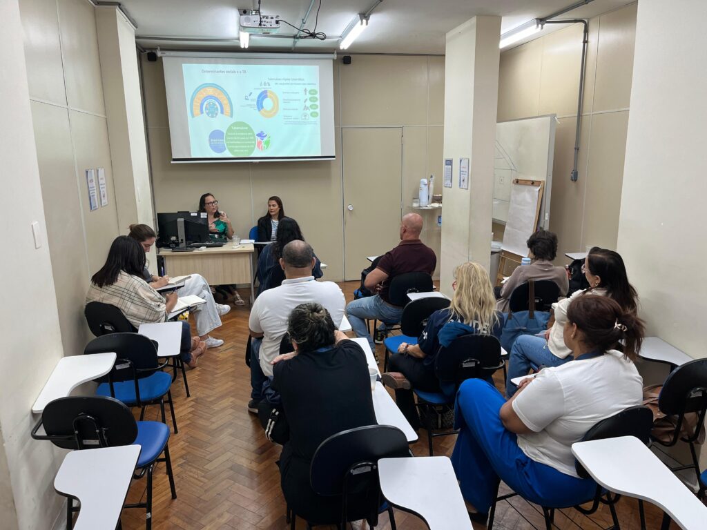 Durante a reunião de planejamento das atividades foi apresentada palestra sobre “Determinantes Sociais e Tuberculose”, ministrada por Ana Paula Barbosa – Gerente da Gerência de Doenças Pulmonares Prevalentes (GDPP/SMS-Rio), Maira Guazzi – Assistente Social – GDPP e Poliana Santana – Assistente Social Secretaria Estadual de Saúde/Secretaria Municipal de Saúde (SES/SMS-Rio).